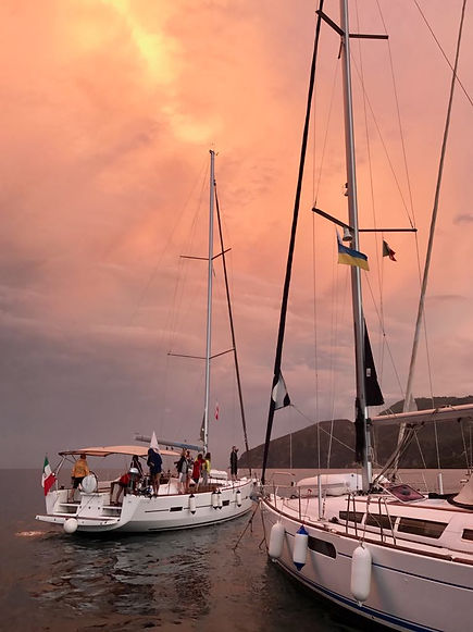 Рано утром мы покидаем полюбившийся Вулкано (здесь по желанию команды можно повторить трюк со встречей рассвета в открытом море), разворачиваем все паруса, и как бывалые пираты совершаем крутой 7-8 часовой переход. Это день настоящего сейлинга! Все уже давно освоились на Яхте, у капитана как минимум несколько надежных помощников, команда загоревшая, подтянутая, с горящими от избытка эмоций глазами, очень слаженная, каждый точно знает что и когда надо делать, чтоб обогнать конкурентов в море)) Гонки! Ветер! Драйв! Лучшие Яхтенные фото будут сделаны именно в этот день! Но можно и остановиться для плавания, конечно. А можно плыть за яхтой на шкоте. А ещё наши Яхты часто сопровождают дельфины.... Они тоже участвуют в гонках) И им в кайф обгонять Яхты! Проверено)) Сегодня у нас есть чётко обозначенная цель - к 18,00 все Яхты должны вернуться в Марину города Палермо... Именно там мы соберёмся на общий ужин в одном из бесчисленных ресторанчиков с видом на море и засыпающие Яхты.... Как правило находятся чудесные девушки, способные испечь праздничный торт прямо во время яхтенных гонок завершающего дня) А потом все долго гуляют по ночному городку, вспоминают самые красивые моменты путешествий, записывают телефоны новых друзей, планируют новые невероятные приключения ... Ночуем традиционно на яхтах)